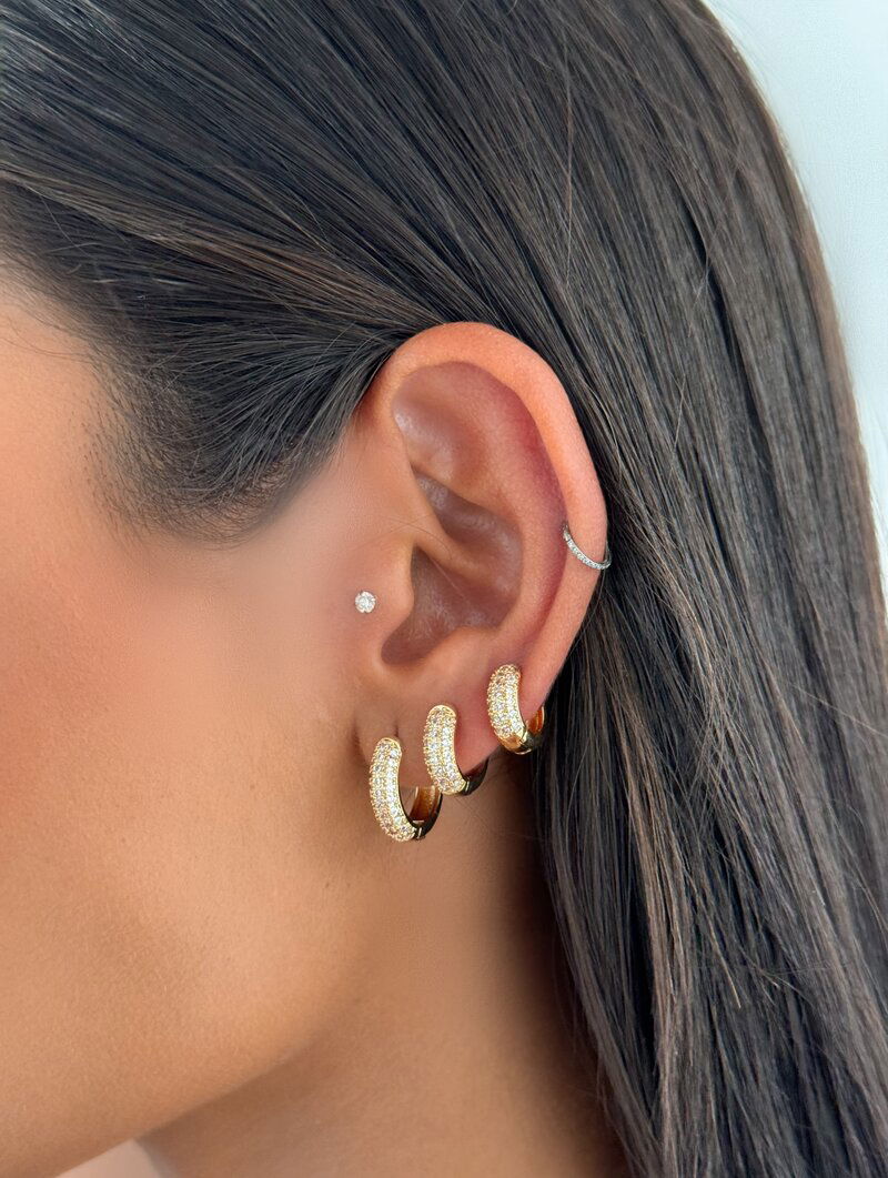 3. Trio de Brincos Folheado a Ouro 18k e Prata Argolas Cravejadas