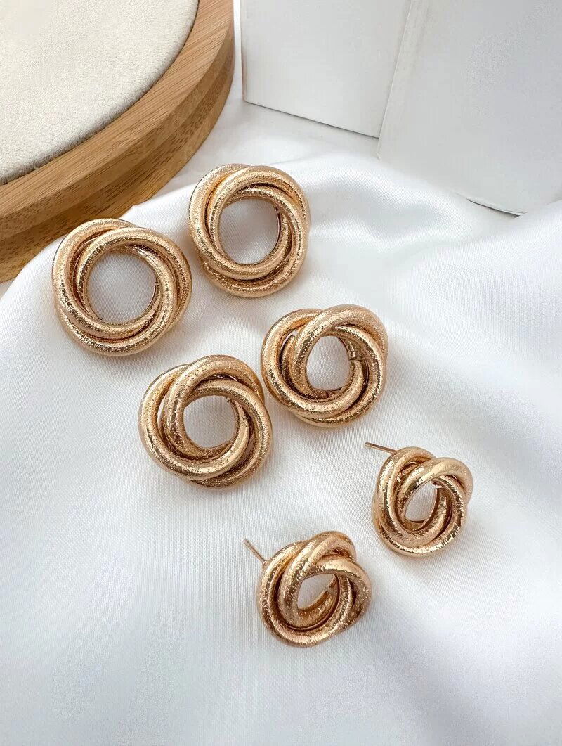 3. Trio de Brincos Folheado a Ouro 18k e Prata Argolas Entrelaçadas