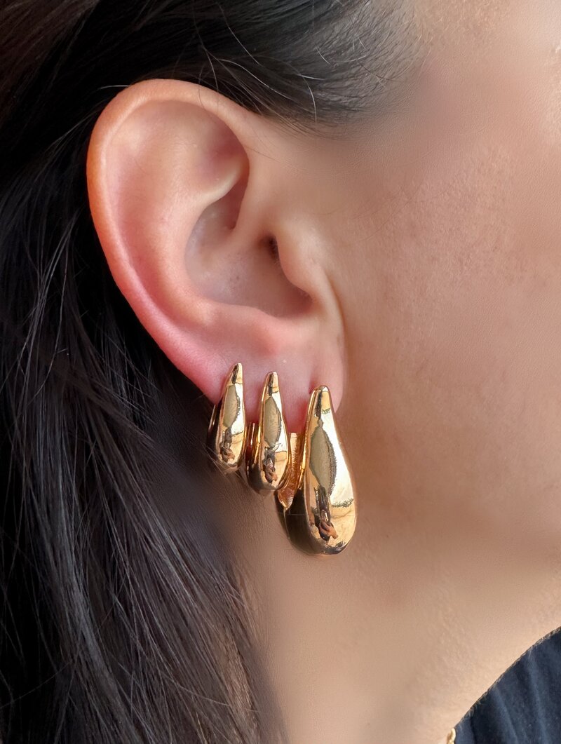 Trio de Brincos Folheado a Ouro 18k e Prata Argolas Formato Gota