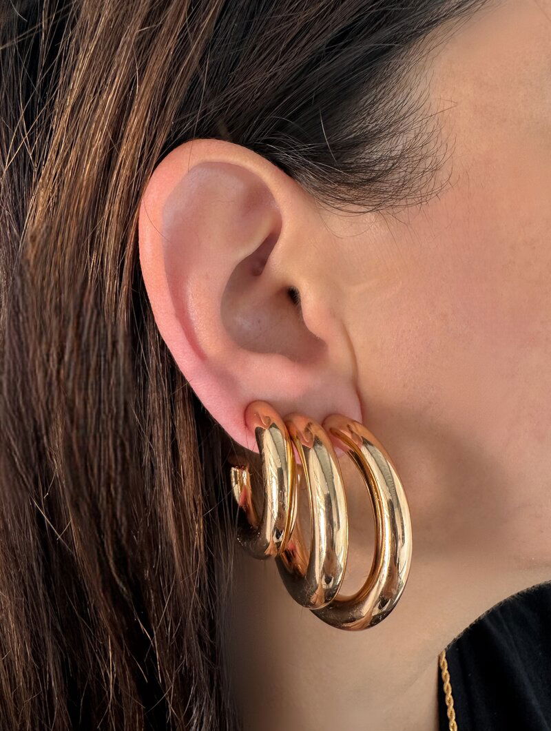 3. Trio de Brincos Folheado a Ouro 18k e Prata Argolas Lisas
