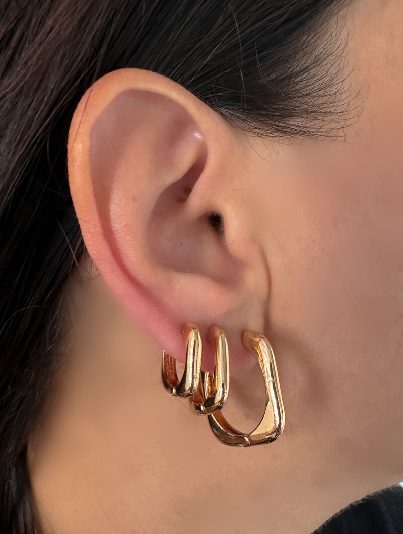 3. Trio de Brincos Folheado a Ouro 18k e Prata Argolas Quadradas com Fecho