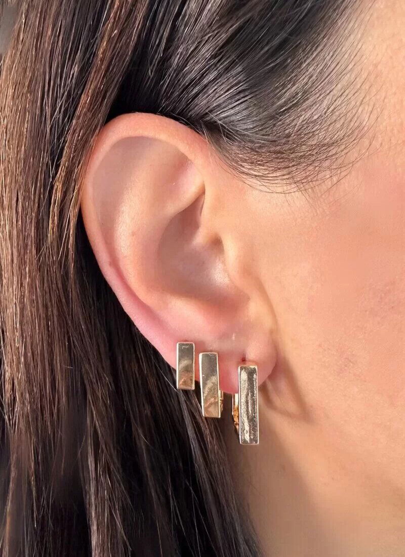 3. Trio de Brincos Folheado a Ouro 18k e Prata Argolas Quadradas Lisas