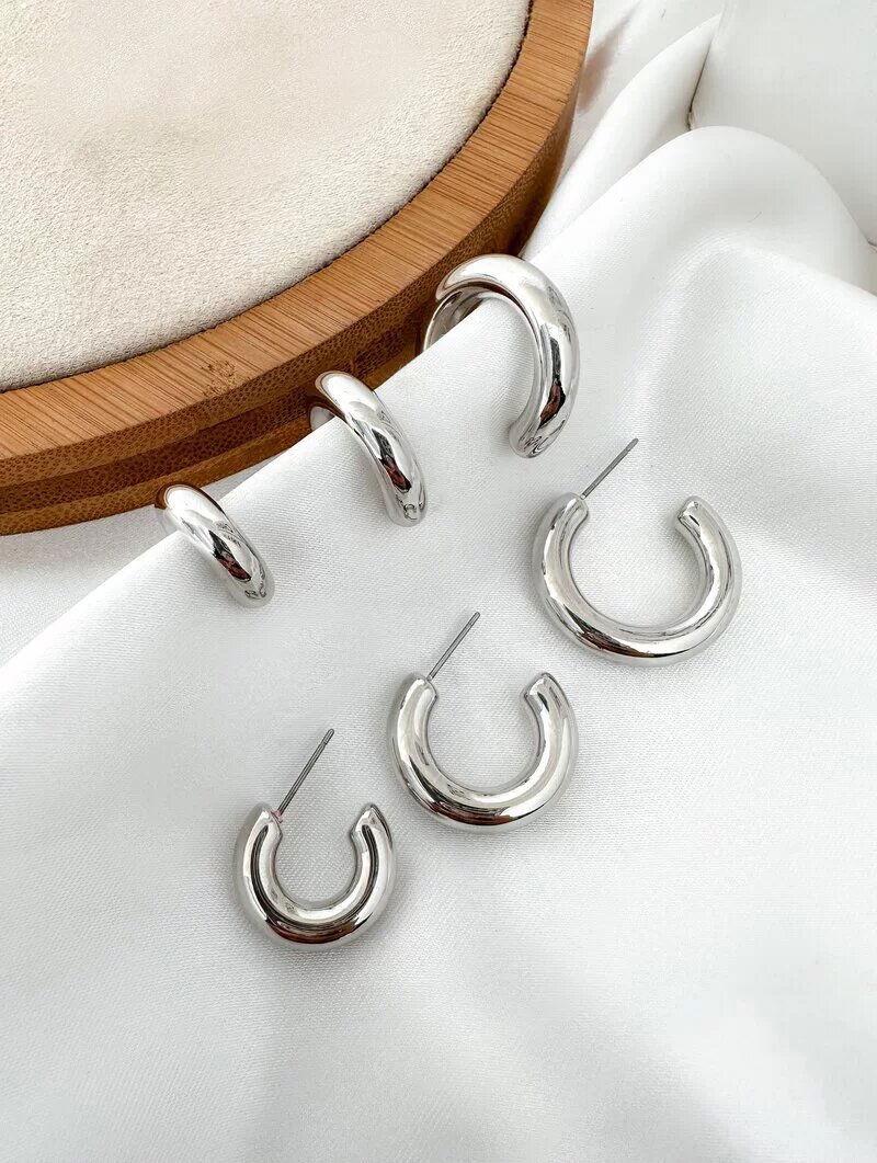 3. Trio de Brincos Folheado a Ouro 18k e Prata Argolas Tubo Fina