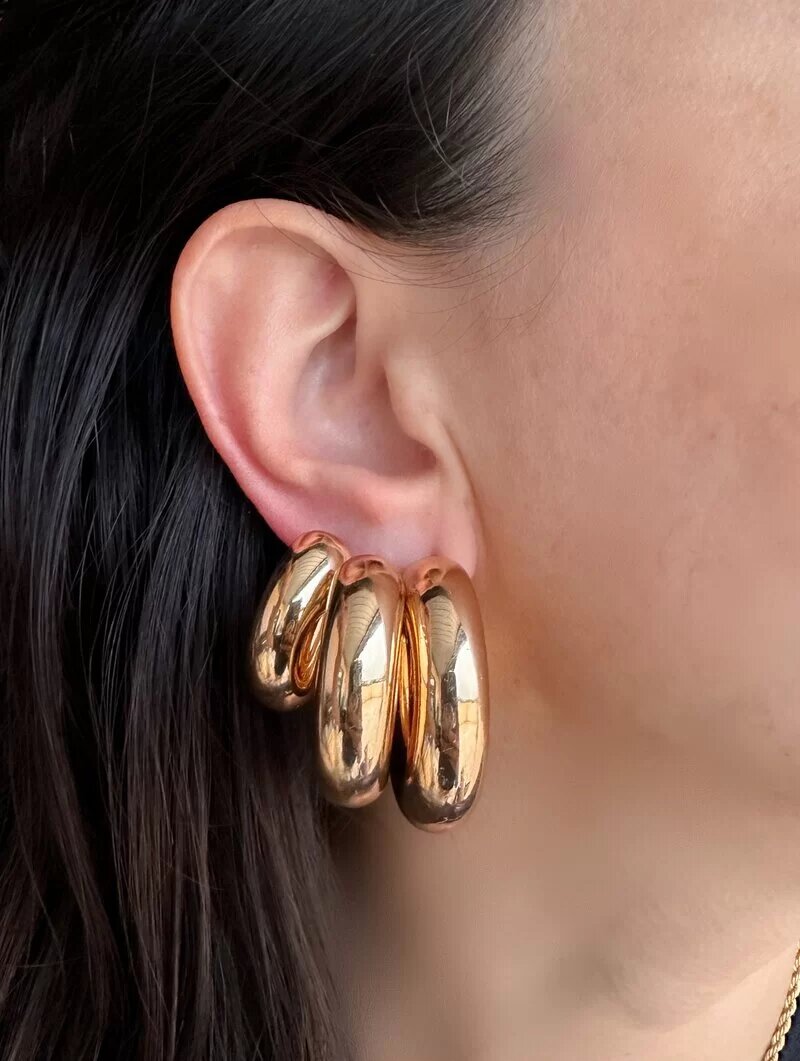 3. Trio de Brincos Folheado a Ouro 18k e Prata Argolas Tubo Lisa
