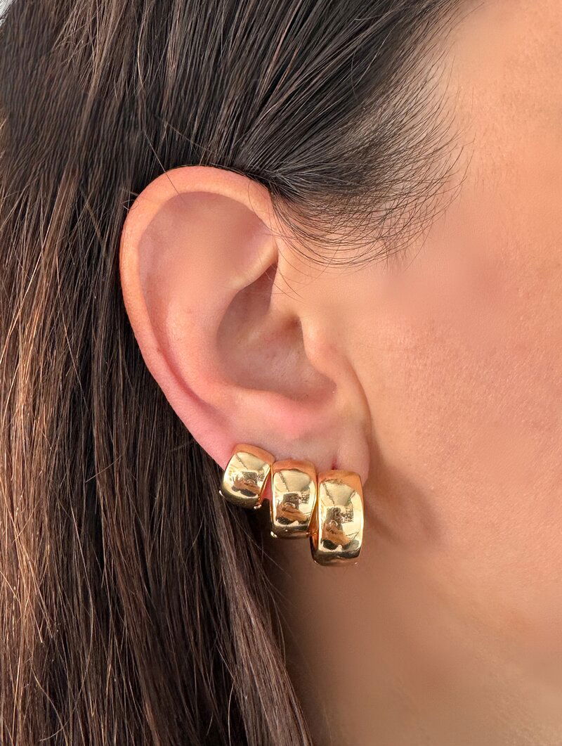 3. Trio de Brincos Folheado a Ouro 18k e Prata Argolinha Grossa Lisa com Fecho