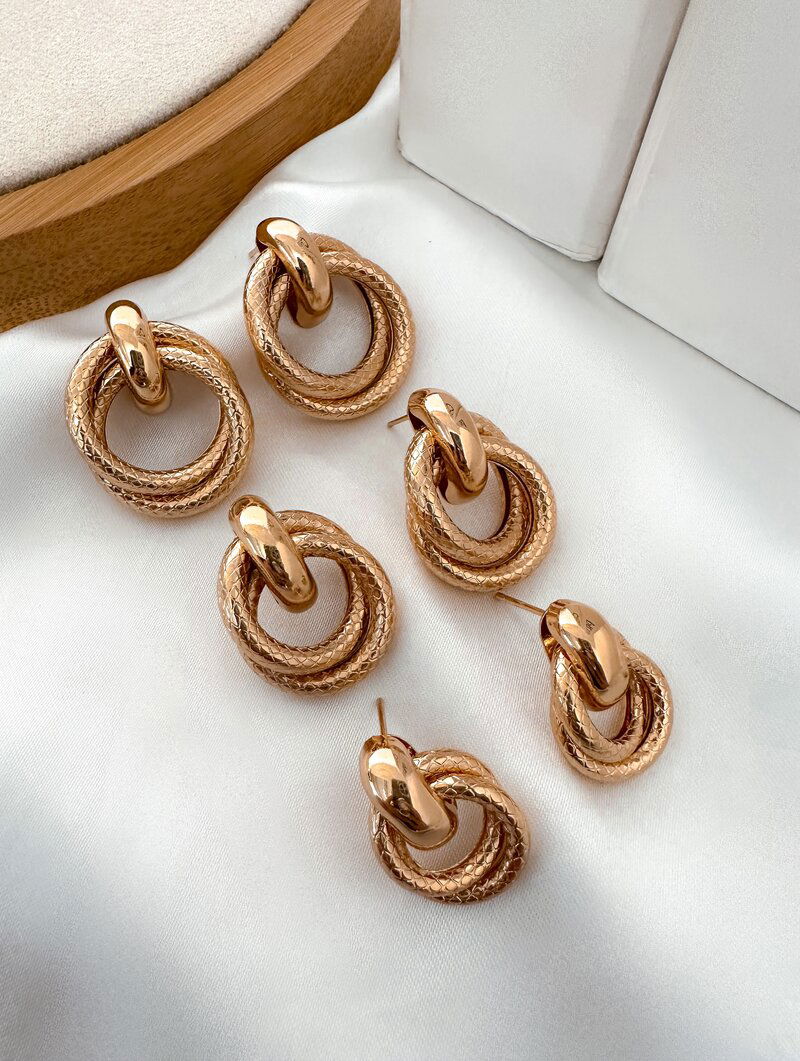 3. Trio de Brincos Folheado a Ouro 18k e Prata Circulos Texturizados com Ponteira