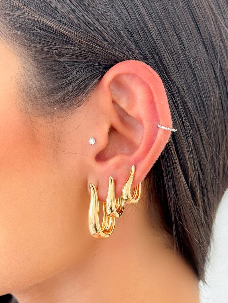 3. Trio de Brincos Folheado a Ouro 18k e Prata Gotas Lisas