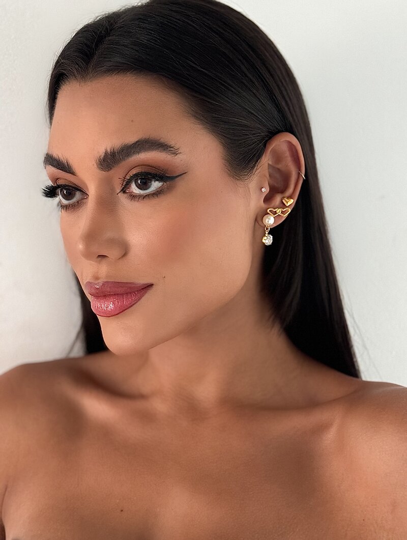 3. Trio de Brincos Folheados a Ouro 18k Corações e Pérola com Zircônia