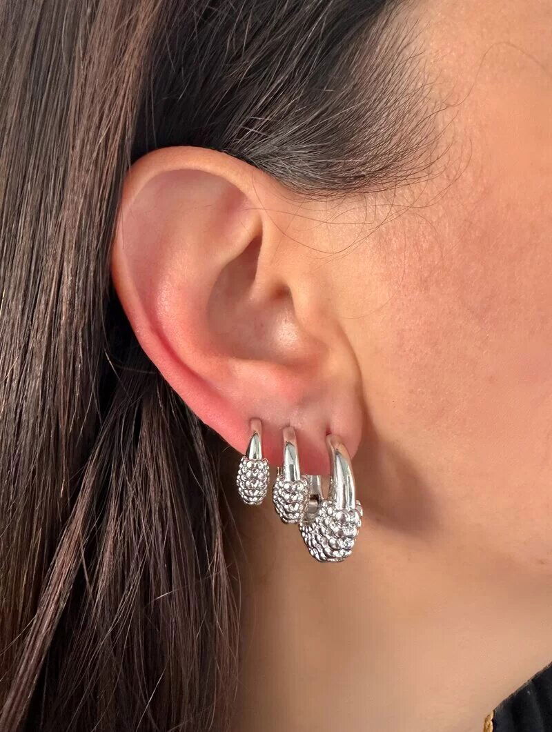 3. Trio de Brincos Folheados a Ouro 18k e Prata Argola com Detalhes Trabalhados