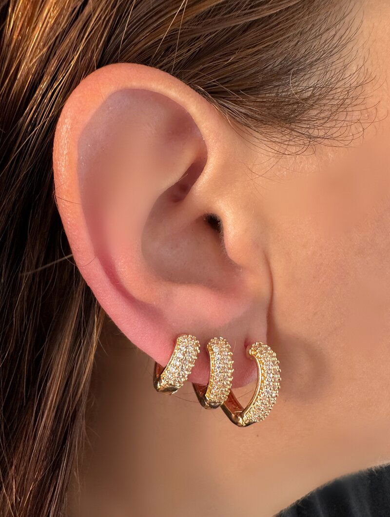 3. Trio de Brincos Folheados a Ouro 18k e Prata Argola Coração Cravejado