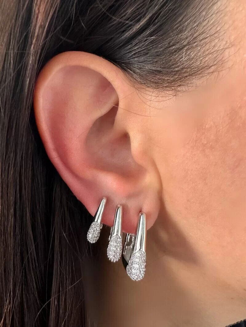 3. Trio de Brincos Folheados a Ouro 18k e Prata Argolas com Fecho e Detalhes Cravejados