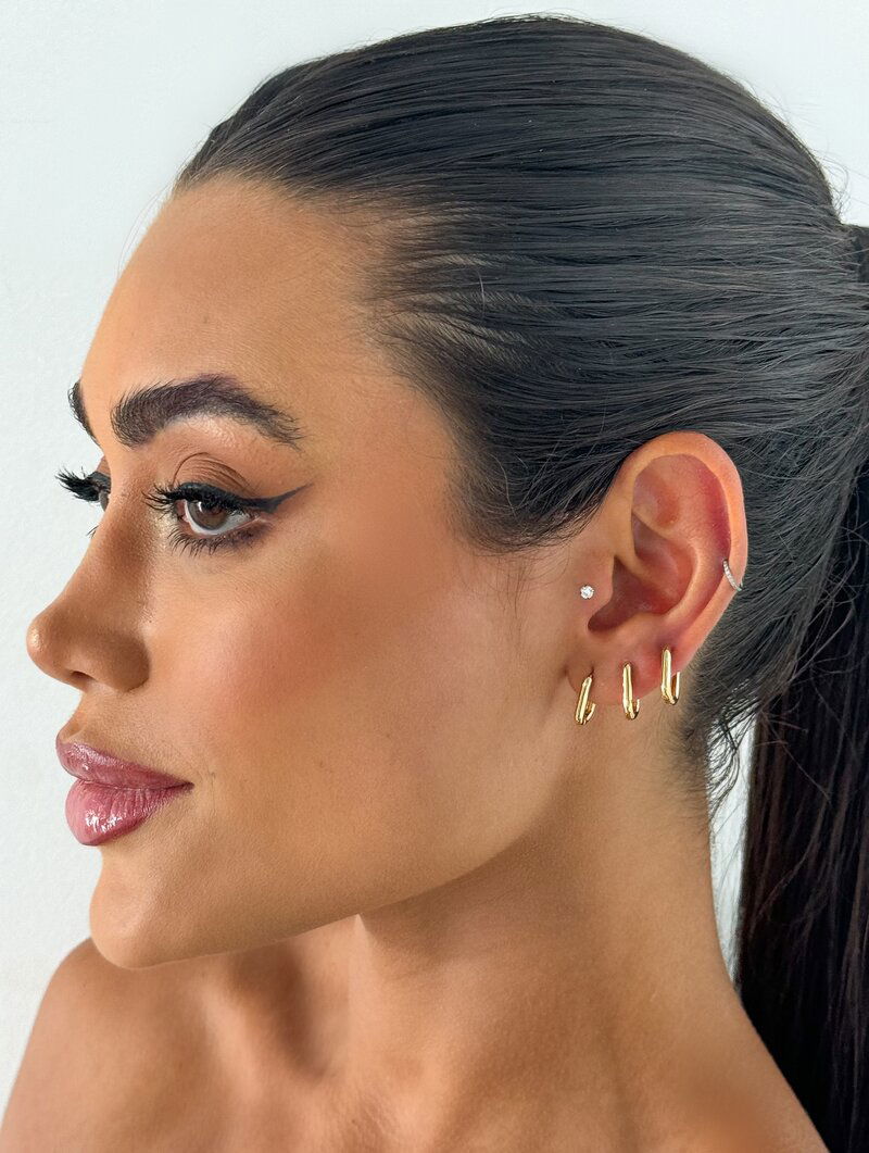 Trio de Brincos Folheados a Ouro 18k e Prata Argolas com Fecho Lisas