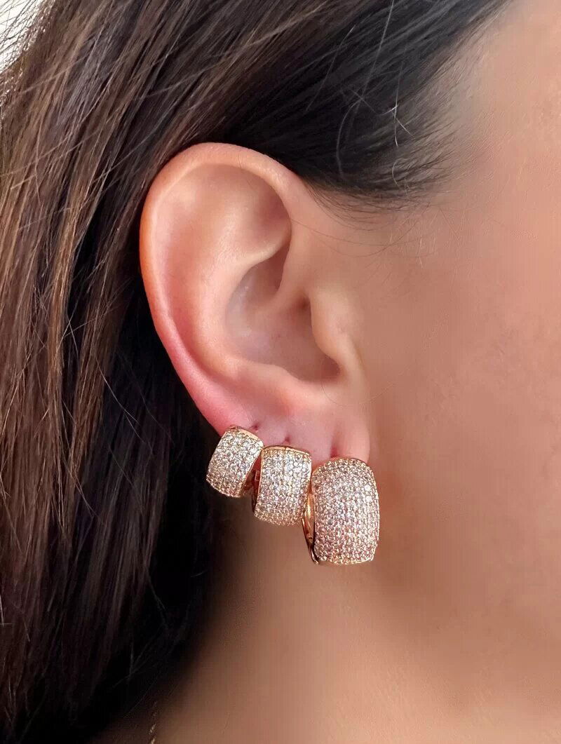 3. Trio de Brincos Folheados a Ouro 18k e Prata Argolas Cravejadas com Fecho