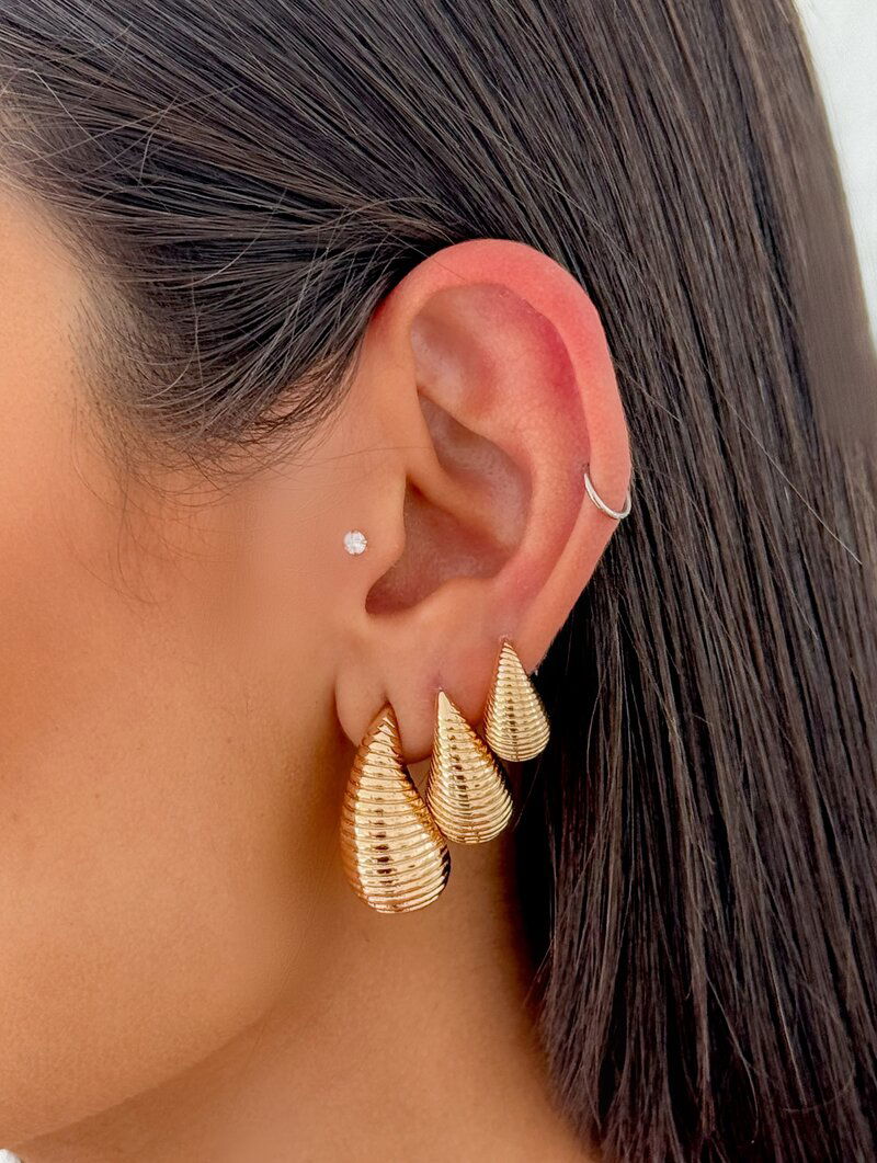 3. Trio de Brincos Folheados a Ouro 18k e Prata Gotas Listradas