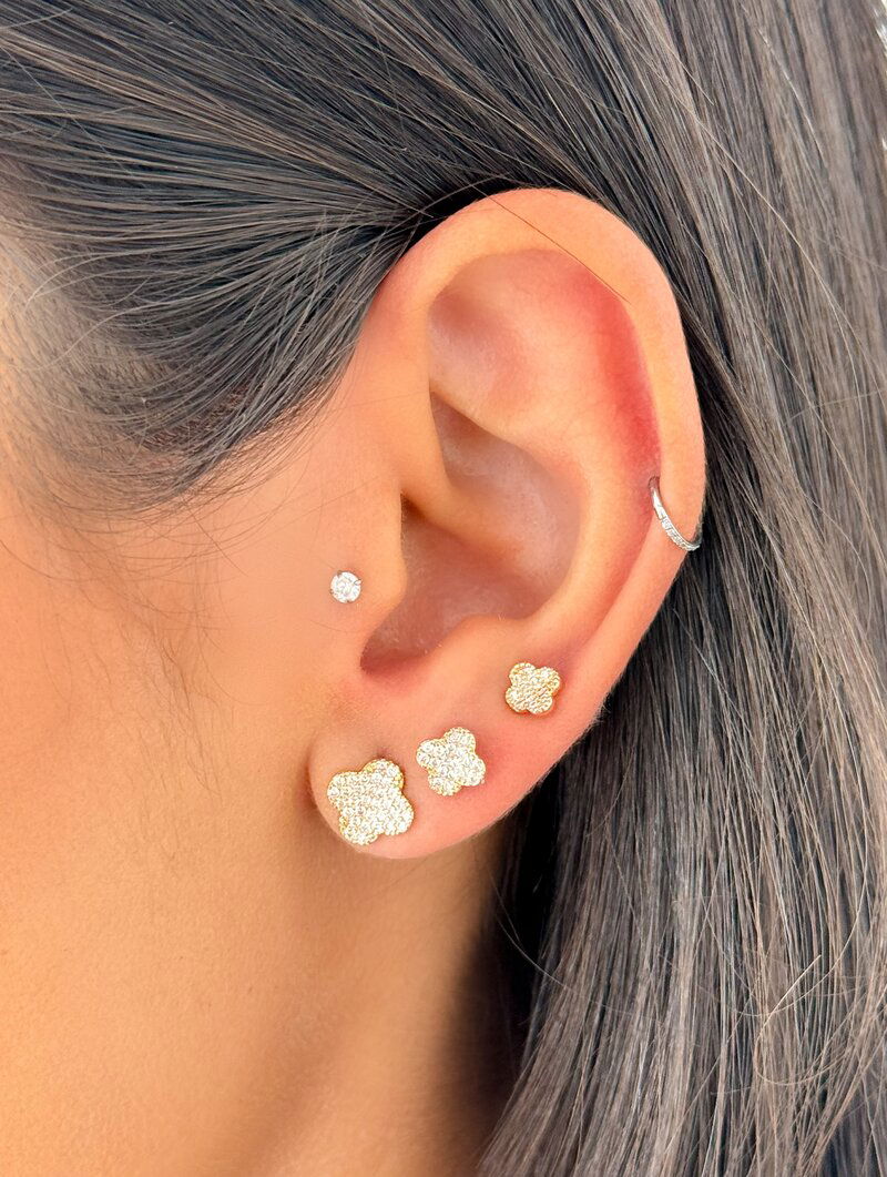 3. Trio de Brincos Folheados a Ouro 18k e Prata Inspiração Joalheria Cravejado
