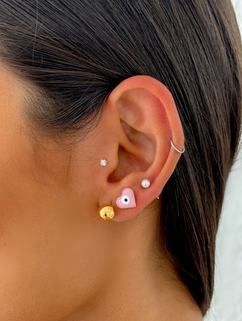 3. Trio de Brincos Folheados a Ouro 18k Esfera, Coração e Pérola