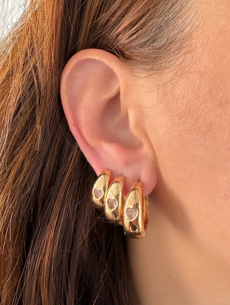 3. Trio de Brincos Folheados a Prata Argolas com Coração de Zircônia
